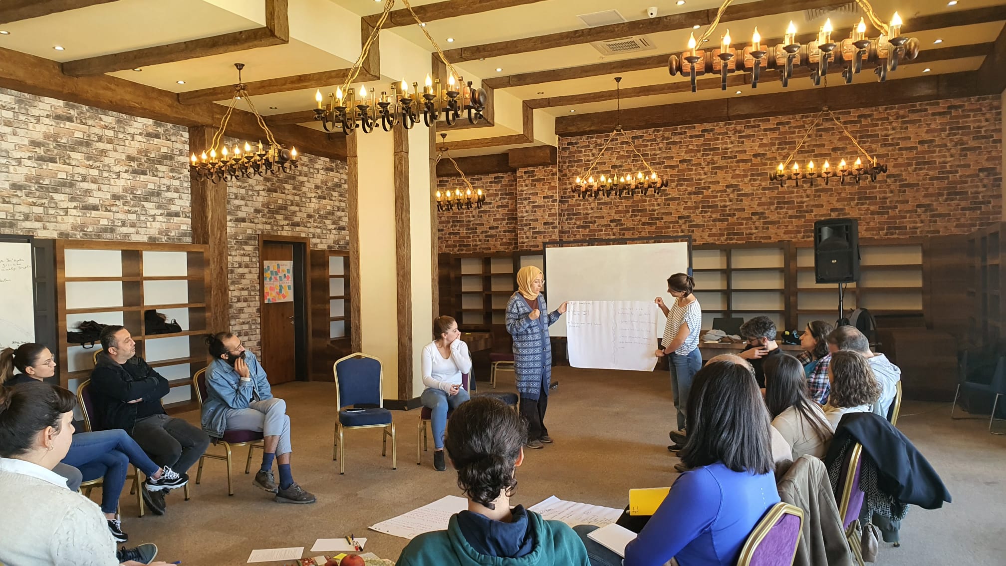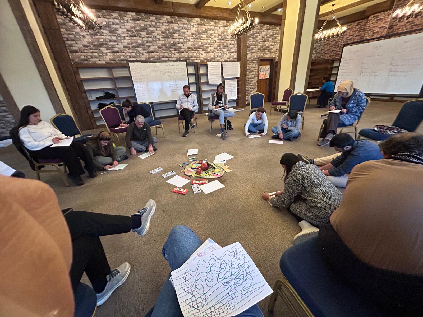 Nil Delahaye ve Naci Emre Boran'ın kolaylaştırıcılığında üç tam gün süren çalışmada Diyarbakır’da faaliyet gösteren yerel yönetim birimleri, sivil toplum kuruluşları ve kültür sanat kurumlarından toplam 19 temsilci ile bir araya geldik. Ayrımcılıkla mücadele alanında yerel işbirlikleri odağında tartışmalar yürüttüğümüz atölyede, katılımcı kurumların bu alanda geliştirdiği araçları birbirleriyle paylaşmasına alan açarak sektörler arası işbirliğini güçlendirmeyi hedefledik. Esenlik temasında ise, dekolonyal bir perspektiften bireysel ve örgütsel esenlik üzerine konuştuk ve yerelden/dünyadan iyi örnekleri ele aldık. Atölyenin son gününde katılımcı kurumların birbirleriyle beceri ve kaynaklarını paylaşmasını hedefleyen "Esenlik Değişim Programı"nı birlikte tasarladık.